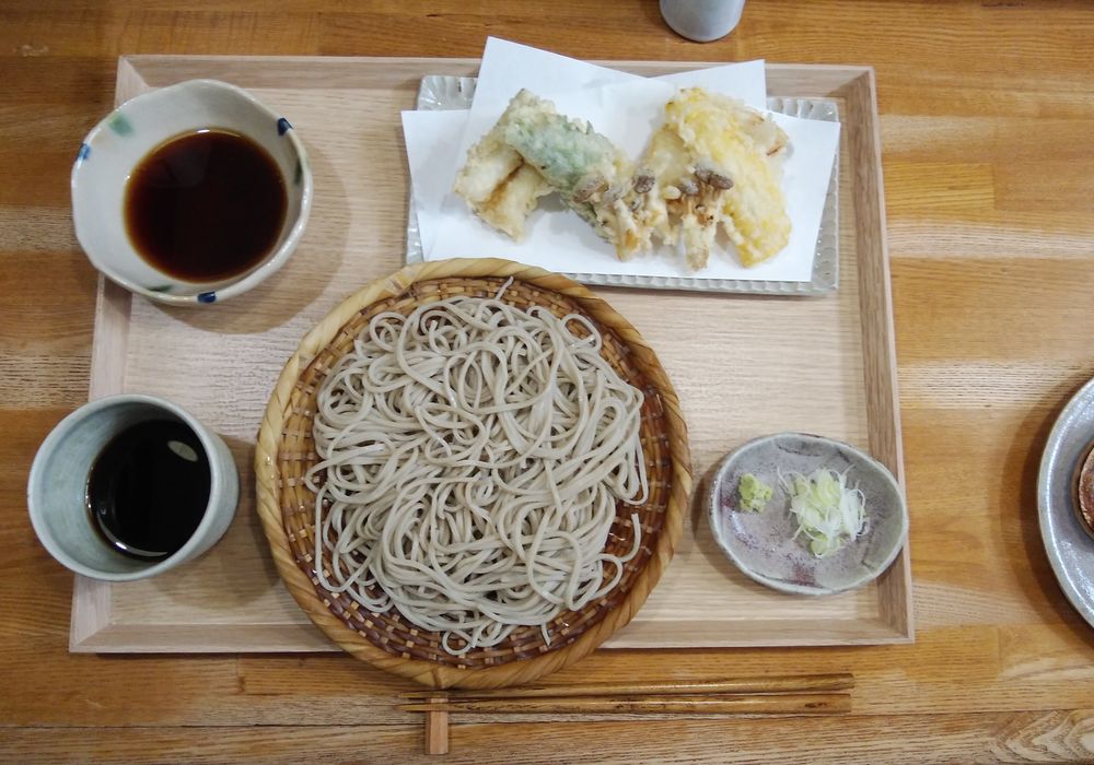 例えば、「天ざる」は、穴子、エビの大葉巻、ドルチェドリームのもろこし、